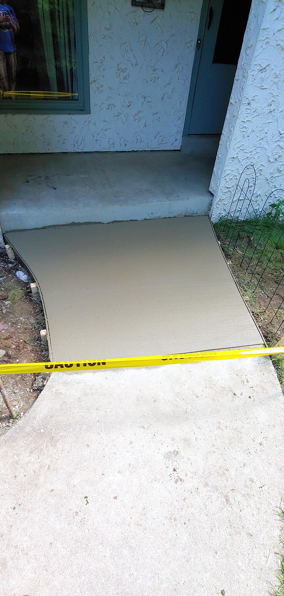 The homeowner’s old front walkway slab was removed and a new concrete slab was poured and finished.